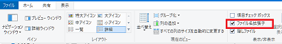 拡張子表示方法 ・フォルダを開き、表示タブにて「ファイル名拡張子」のチェックを入れます。
